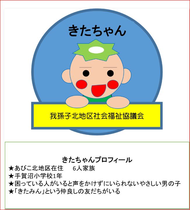北地区社協は皆様のご支援のもと、今後においても北地区社協は愛されるキャラクターと我孫子北地区の皆様と共に社会福祉に対する活動を推進していきたいと考えております。今後とも宜しくお願いいたします。